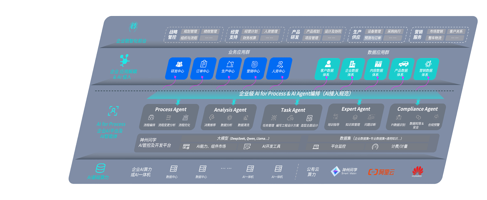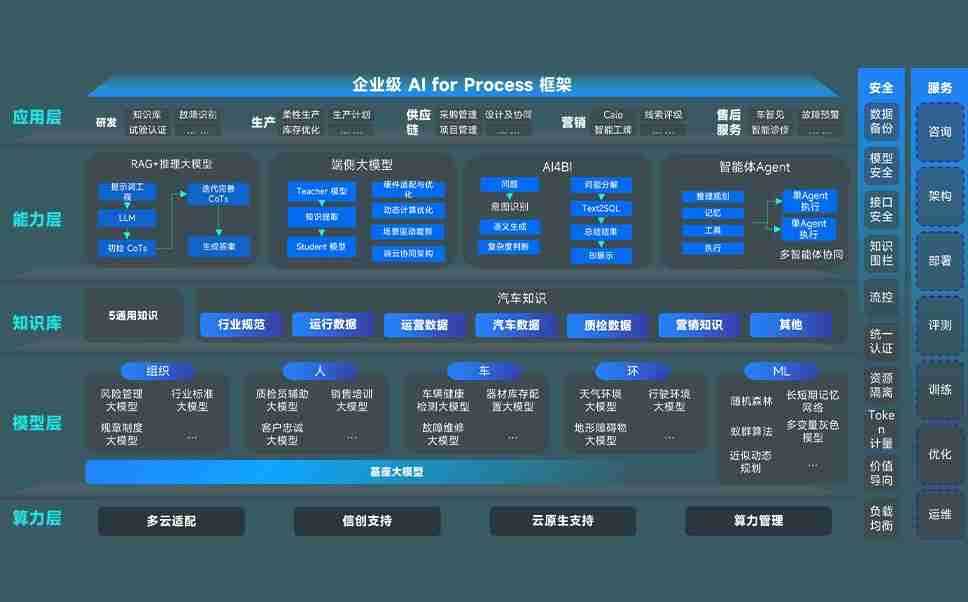奇亿娱乐问学智车解决方案是一套基于AI技术的汽车行业智能化系统,,覆盖从底层算力到顶层AI应用的全栈方案。。方案由算力层、、模型层和应用层组成:算力层,,方案支持多种一体机配置,,,具备云端灵活部署、、、、多云适配以及动态优化计算资源的能力;模型层,,,奇亿娱乐问学平台版提供了企业级AI应用一站式构建与管理平台,,支持基于后训练强化技术的汽车企业专属模型的训练、、、评测和运营;应用层,,,,奇亿娱乐问学DeepSeek版提供包括超级员工、、智能招采、、、、智能营销、、智能客服、、、、AI for BI等一系列解决方案,,可助力汽车行业实现数字化转型,,,,让管理更智能、、、、响应更敏捷。。。。